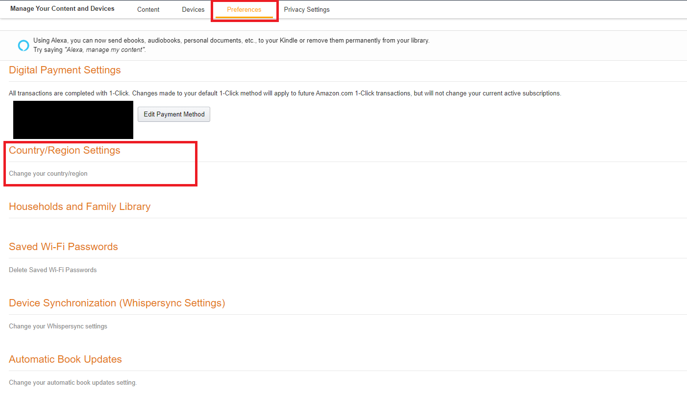 2. Preferences - Change your country/region 클릭