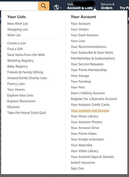 - Account & Lists - your Content and Devices 선택