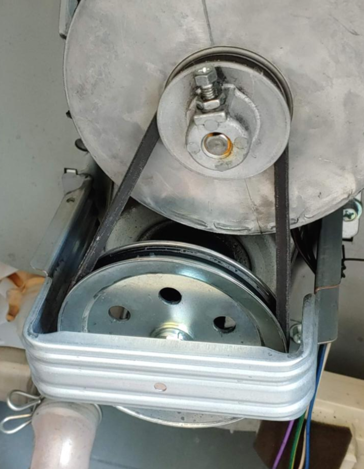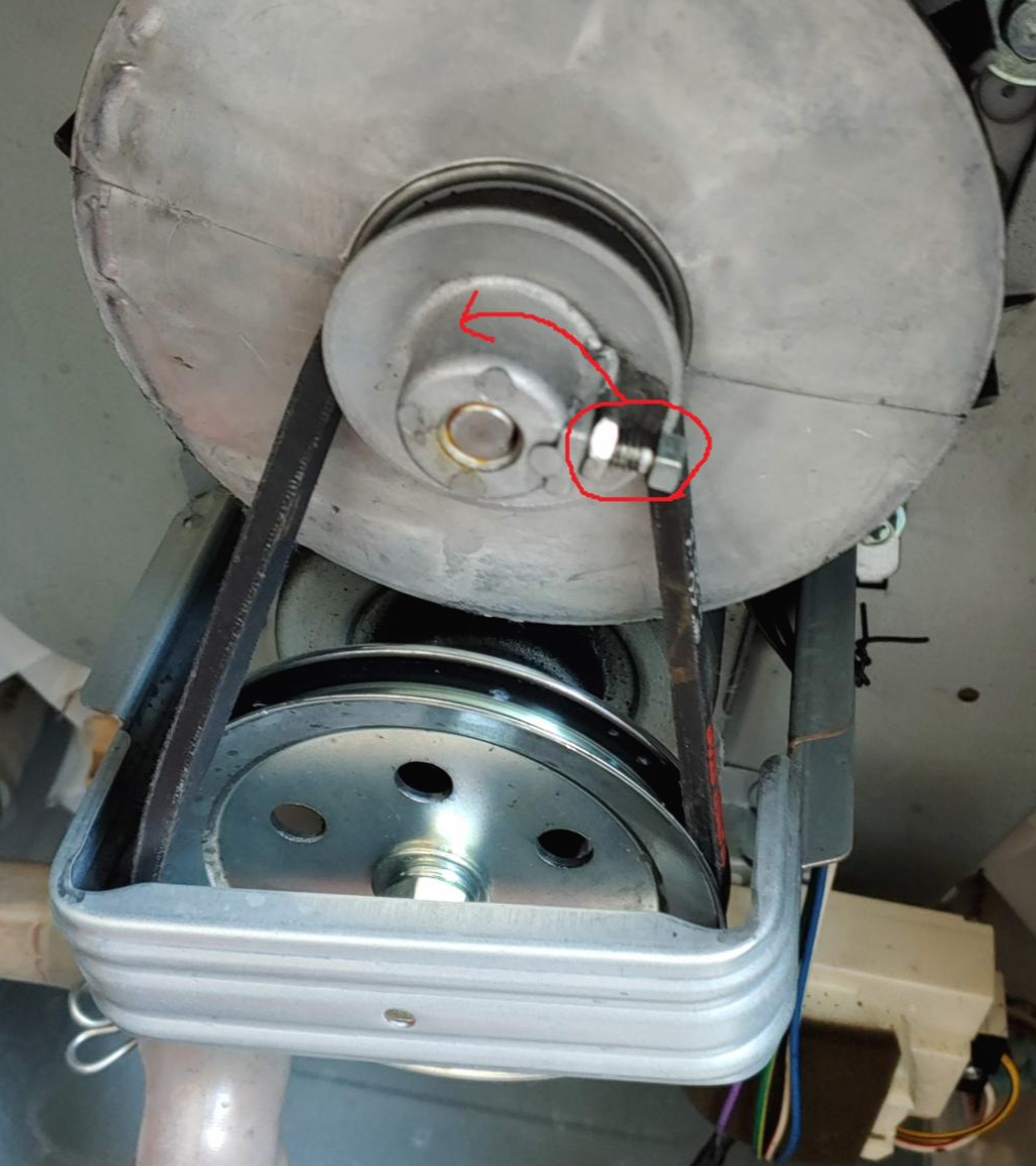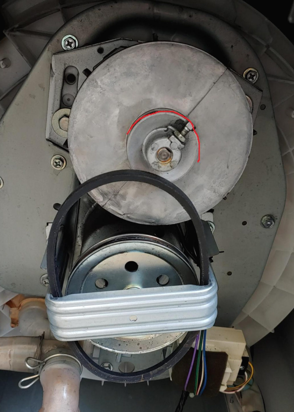 4. 바퀴를 돌린다. 세탁기마다 모양이 다르겠지만 나는 작은 나사 부분을 잡고 돌렸다. 돌리는 방향이 가물가물한데 반시계 방향으로 돌렸던 것 같다. 제대로 돌렸다면 벨트가 점점 큰 바퀴 홈에 들어가며 장착이 된다.