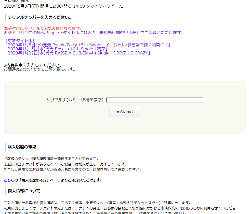 최근 뱅드림과 관련된 이벤트는 cnplayguide에서 응모했는데(회원가입에는 일본 전화번호가 필요하지만 IP 전화인 050 전화번호도 가능하고, 한국 카드 결제도 받는 갓갓) 이번 5월 이벤트는 라쿠텐 티켓으로 사이트가 변경되었다. (미리 얘기하자면 전화번호는 필요없지만 카드 결제를 막아놓고 편의점 결제만 허용해놨다)